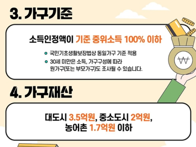단, 가구 소득은 두 경우 모두 기준 중위소득 100% 이하이어야 하며, 기존 유사 지원사업 참여 이력이 있는 경우엔 제한이 있을 수 있습니다.