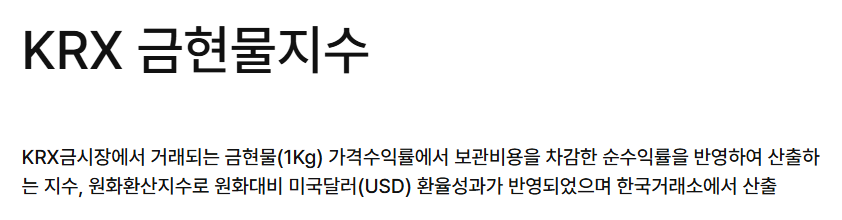 - 일반 금 펀드 대비 수수료가 낮고, 장내 거래이기 때문에 비교적 저렴한 비용으로 투자할 수 있습니다.