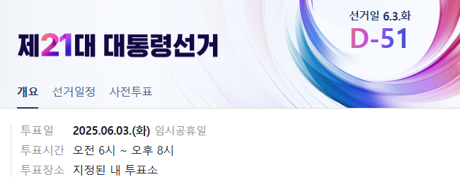 헌법상 대통령 궐위 시 60일 이내에 대선을 치러야 하는 만큼, 선거일은 6월 3일(화)로 결정되었습니다. 이날은 임시공휴일로 지정되며, 다음과 같은 일정이 함께 진행됩니다.