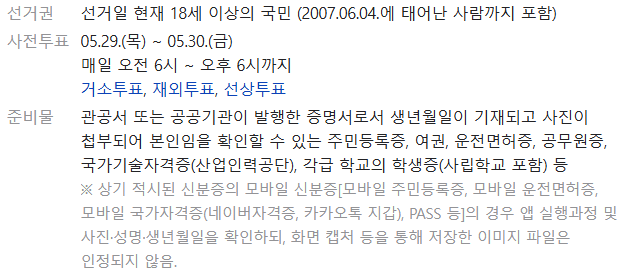 - 본 투표일: 6월 3일 오전 6시~오후 8시