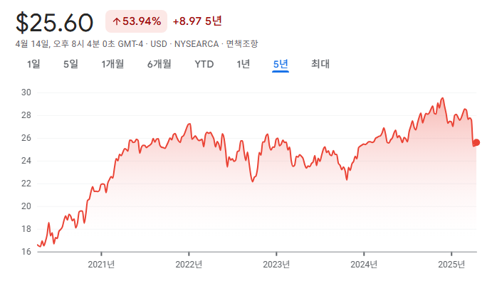 게다가 해당 ETF는 매년 안정적인 배당 증가도 보여주고 있어, 단순히 ‘현금 흐름’을 노리는 것 이상으로 장기적인 복리 효과까지 기대할 수 있습니다.