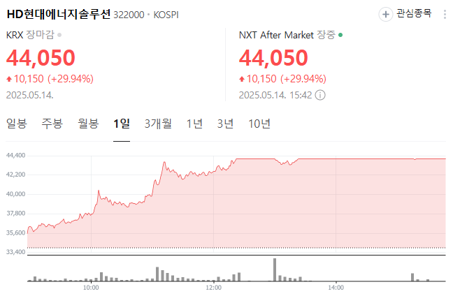 2025년 5월 14일, HD현대에너지솔루션은 주식 시장에서 상한가를 기록했습니다. 이 회사는 지난 7일부터 본격적으로 상승 랠리를 시작했으며, 이날에는 주가가 29.94% 급등하면서 4만4050원을 기록했습니다. 그 배경에는 이재명 더불어민주당 대선 후보의 재생에너지 관련 공약이 중요한 영향을 미쳤습니다.