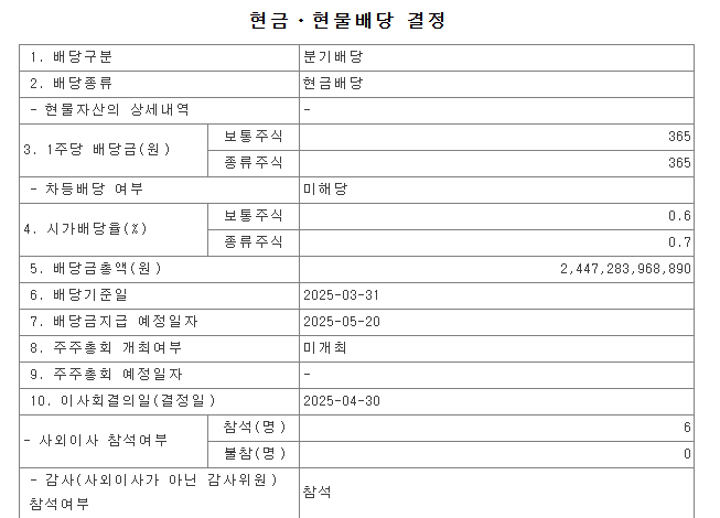 - 배당락일(Ex-dividend Date): 일반적으로 기준일 이틀 전, 즉 6월 27일 예상