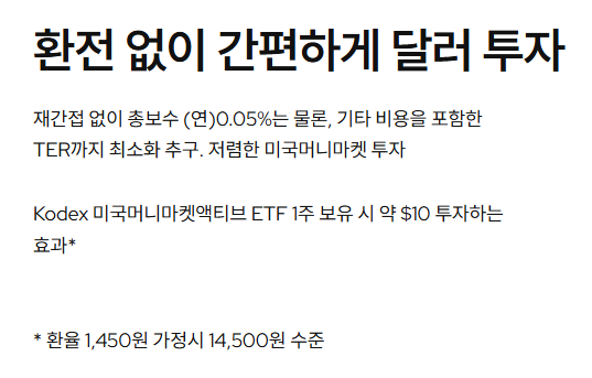 Kodex 미국머니마켓액티브: 초단기 채권으로 구성된 달러 투자 상품