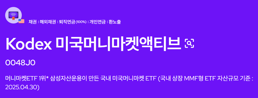 Kodex 미국머니마켓액티브는 미국 초단기채권을 중심으로 구성된 머니마켓 ETF입니다. 쉽게 말해, 미국의 단기 자금시장에 투자함으로써 고금리를 추구하면서도 원금 손실 가능성이 낮은 안정적인 상품이죠. 일반적인 머니마켓펀드(MMF)와 비슷하지만, ETF 형태로 상장되어 있어 주식처럼 매매가 가능합니다.