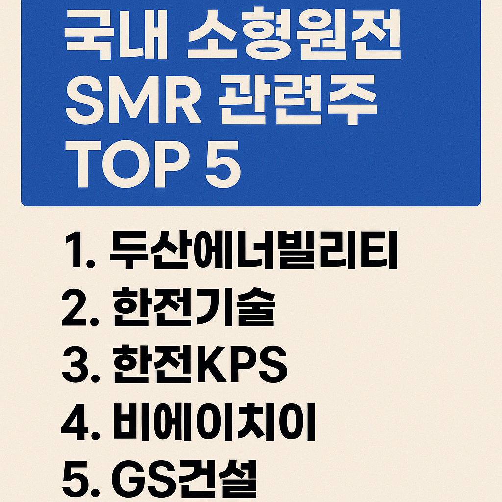 그렇다면 지금 주목해야 할 국내 SMR 관련주 TOP 5는 어떤 기업들일까요?