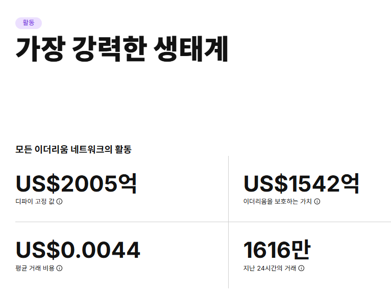 최근 ‘이더리움 2.0’ 업그레이드를 통해 지분증명(PoS) 방식으로 전환, 에너지 효율을 높이고 확장성 문제를 해결해 더 많은 프로젝트가 이더리움 네트워크를 기반으로 성장할 수 있게 됐습니다.
