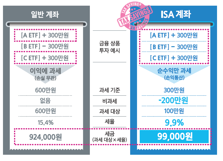 첫째, 손익통산이다. 계좌 내에서 발생한 손실과 이익을 합산해 순이익에만 세금이 매겨진다. 일반 계좌라면 이익이 난 금액 전체에 과세되지만, ISA에서는 세금 부담이 크게 줄어든다.